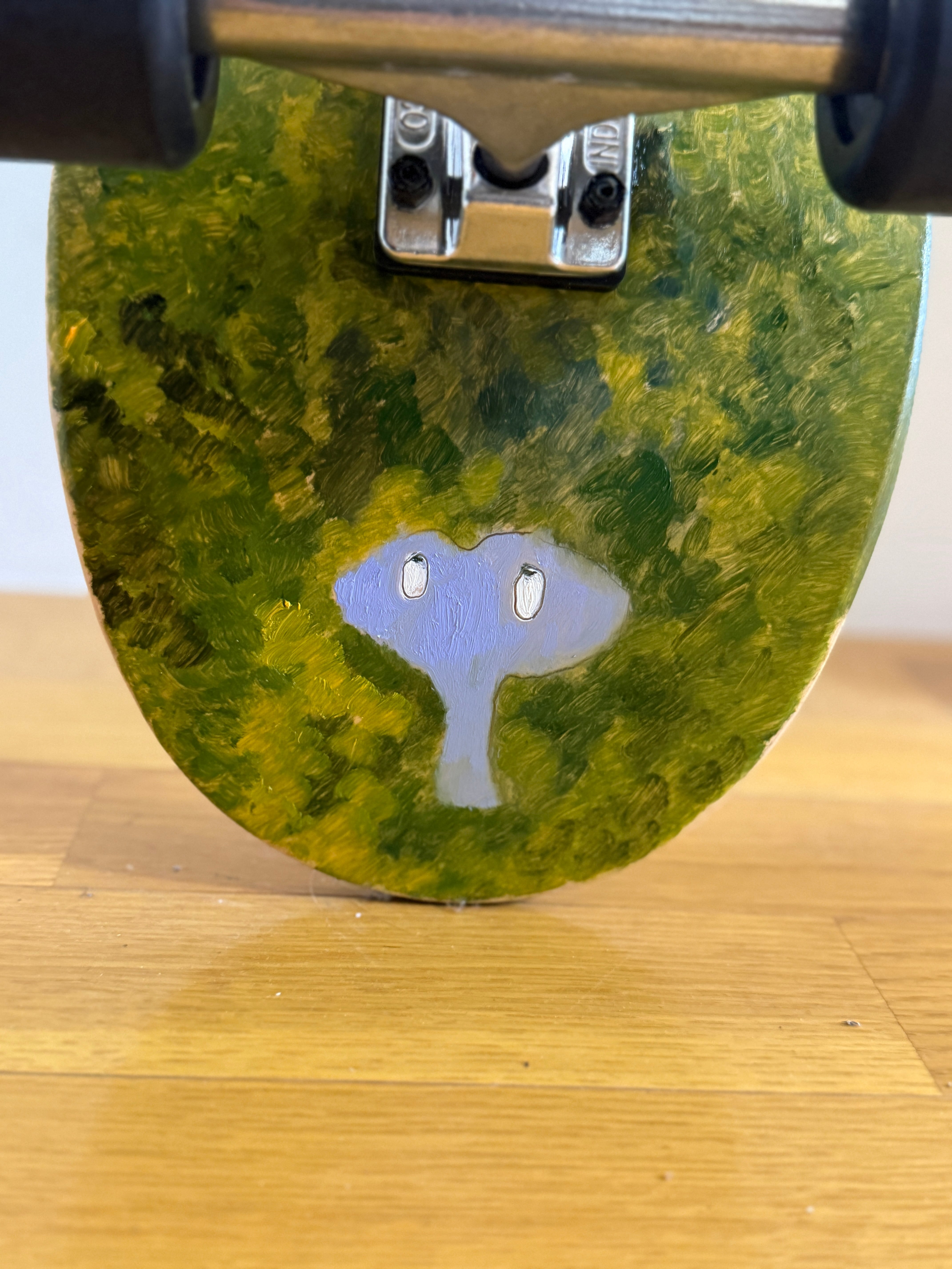 スケボーです。熊本のスケボー屋Olliが完璧なセッティングしてくれた街乗り用のギア、デッキには僕が油絵で描いてます。売れたくないので高い値段設定ですが欲しい方にはあげます。